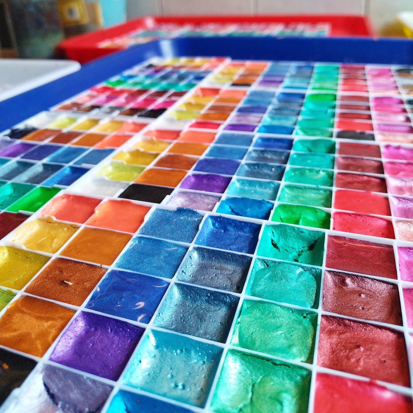 Añade colores a tu paleta mezclando pigmentos en una bandeja o paleta de mezcla. Experimenta con mezclas para lograr los tonos deseados.