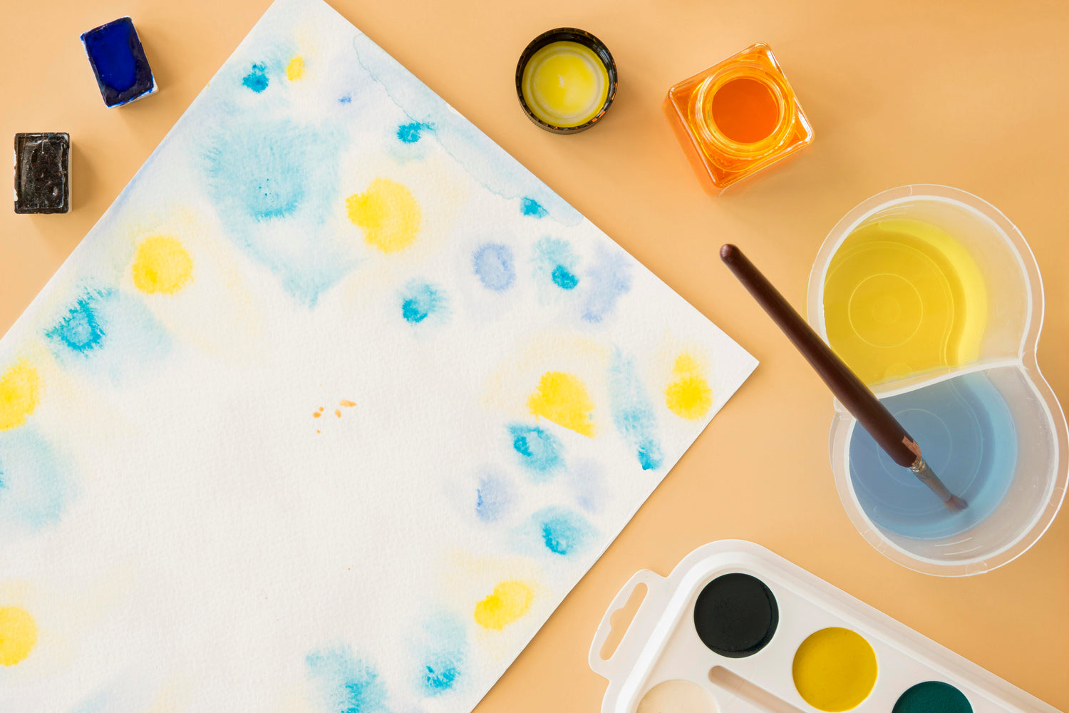 Asegúrate de tener a mano tus acuarelas, pinceles, papel de acuarela de calidad y un recipiente con agua.